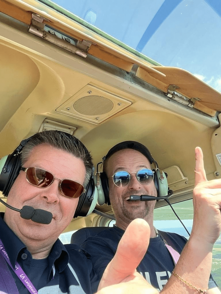 Uiteraard was Erwin op de hoogte van de reden waarom ik wilde vliegen en hij heeft mij super goed wegwijs gemaakt met alle knoppen, meters en hendeltjes.